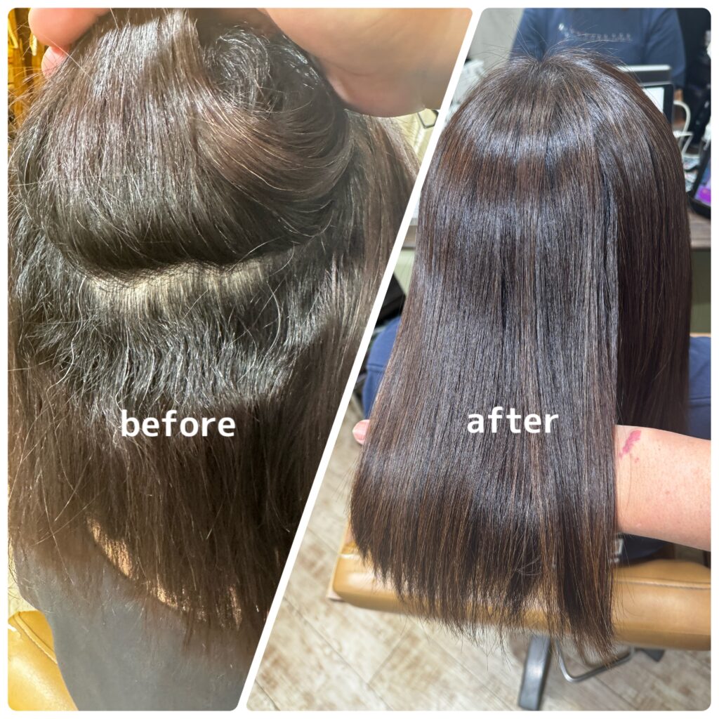 たしかにここまで言う割には、クセが強く、傷みが酷い場合には、当日完全に伸ばしきれない場合も正直に言えばあります。